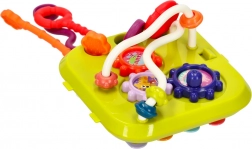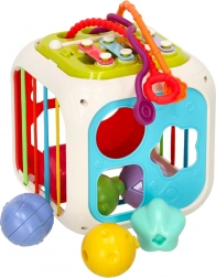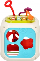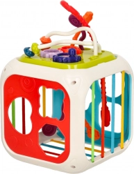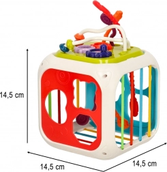Farverig og interaktiv terning er centret for udvikling og sjov for dit barn. Hver side af terningen skjuler forskellige udfordringer, der stimulerer sanserne og forbedrer forskellige færdigheder. Barnet kan:
