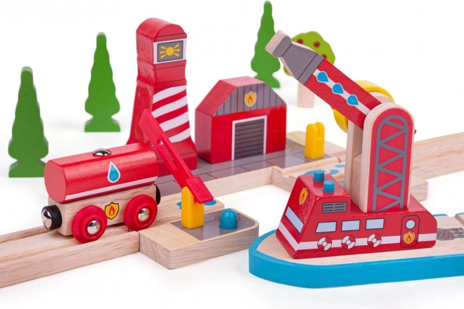 Tag på en spændende redningsmission på skinner og til vands med dette kvalitets træ-sæt fra Bigjigs Rail. Sættet omfatter en brandbåd med bevægelig slange, som nemt kan kombineres med andre togbaner på markedet. Produktet er fremstillet af kvalitetsmaterialer fra ansvarlige kilder og opfylder gældende europæiske sikkerhedsstandarder.
