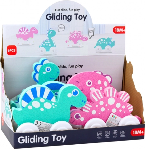 Søde og lette dinosaurer på hjul er det perfekte legetøj til de mindste. De er lavet af blødt skum og har faste hjul, hvilket gør dem til ideelle første køretøjer til børn.