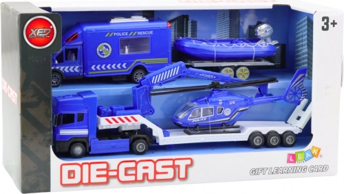Dette sæt med redningskøretøjer er det ideelle valg til børn, der elsker dynamisk underholdning og rolleleg som redningsfolk. Sættet indeholder forskellige typer transportmidler, der bruges ved redningsaktioner: lastbil med trailer og helikopter, politibil samt lastvogn med trailer og redningsbåd. Denne variation gør det muligt for børn at skabe komplekse legescenarier, der understøtter deres fantasi og kreativitet.
