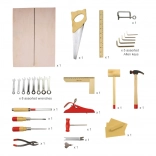 Giv dit barn glæden ved at skabe med denne praktiske værktøjskuffert. Hvert stykke værktøj er omhyggeligt lavet af kvalitets træ og metal for at holde til de nysgerrige hænder hos en lille gør-det-selv’er.