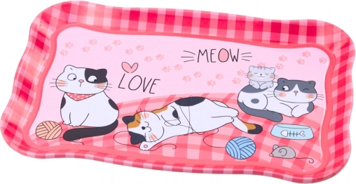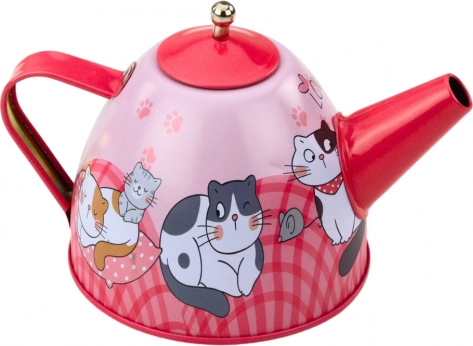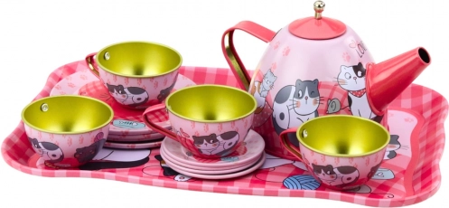 Metal tesæt til børn med kattemotiv, lyserød, 15 dele