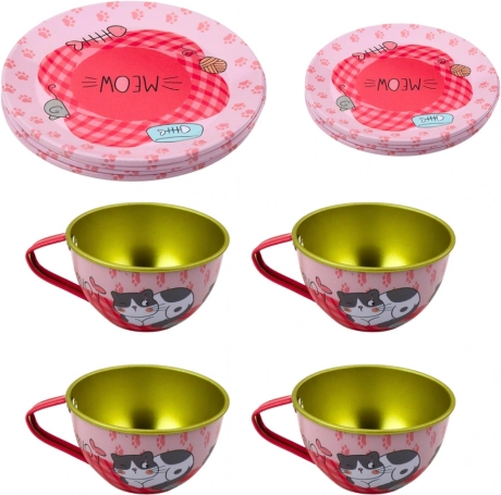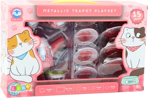 Lys dit barns legeunivers op med et metal tesæt med kattemotiv og strålende design. Sættet indeholder 15 omhyggeligt fremstillede dele, der stimulerer børns fantasi og opfindsomhed.