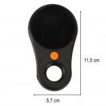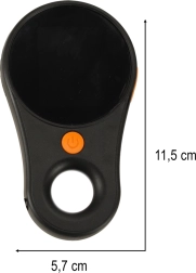 - højde: 11,5 cm, bredde: 5,7 cm, tykkelse: 1,3 cm, maksimal tykkelse: 2,1 cm