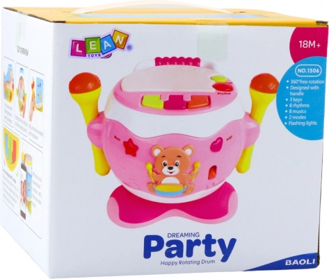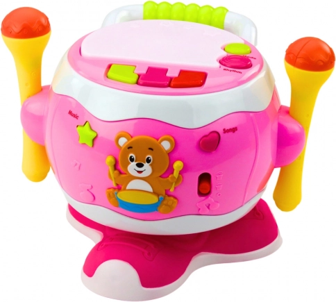 Det lyserøde design med et bjørnemotiv på forsiden vil tiltale enhver lille musikelsker. Med sine farver og sikre design er trommen et ideelt valg til små børn.