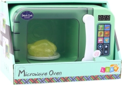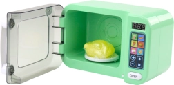 Indbyggede lydeffekter og belysning, som aktiveres under brug, gør legen endnu mere realistisk og fængende. Indvendigt findes en drejetallerken, hvor det medfølgende plastikkylling kan placeres. Ved at trykke på en af de farvede knapper kan børn simulere opvarmning af mad præcis som i et rigtigt apparat.