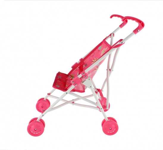 Denne lyserøde dukkevogn med blomstret betræk er praktisk, let og designet til daglig leg. Børn vil sætte pris på de behagelige håndtag, den glatte kørsel på fire dobbelthjul og sikkerhedsselen, der holder dukken på plads. Rammen er af metal, betrækket af slidstærkt stof – let at vedligeholde og langtidsholdbar.