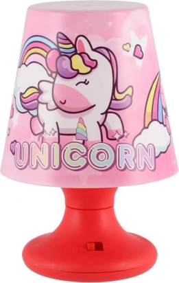 En sød børnelampe med enhjørningemotiv, der lyser op i ethvert børneværelse. Den byder på blødt, stemningsfuldt lys, kompakte mål 8 × 11 cm og nem betjening med kontakt. Den kører på batterier 3 × AG13 (inkluderet) og fås i tre farvevarianter.