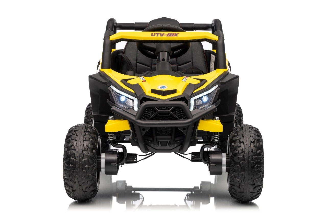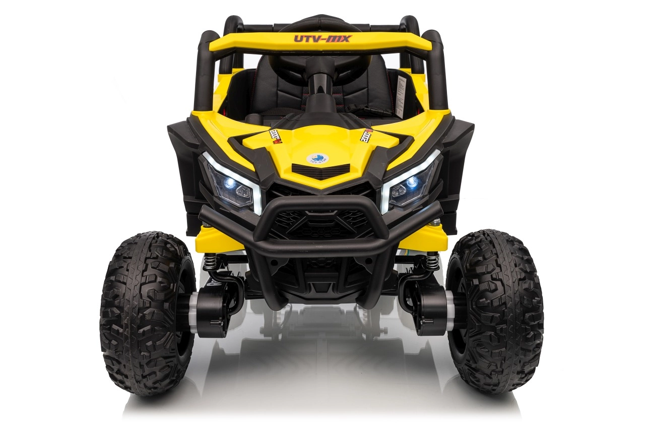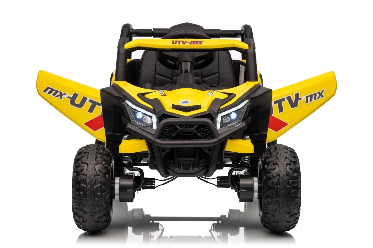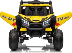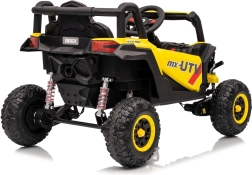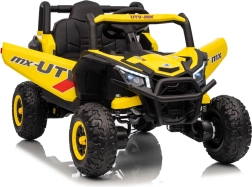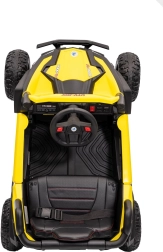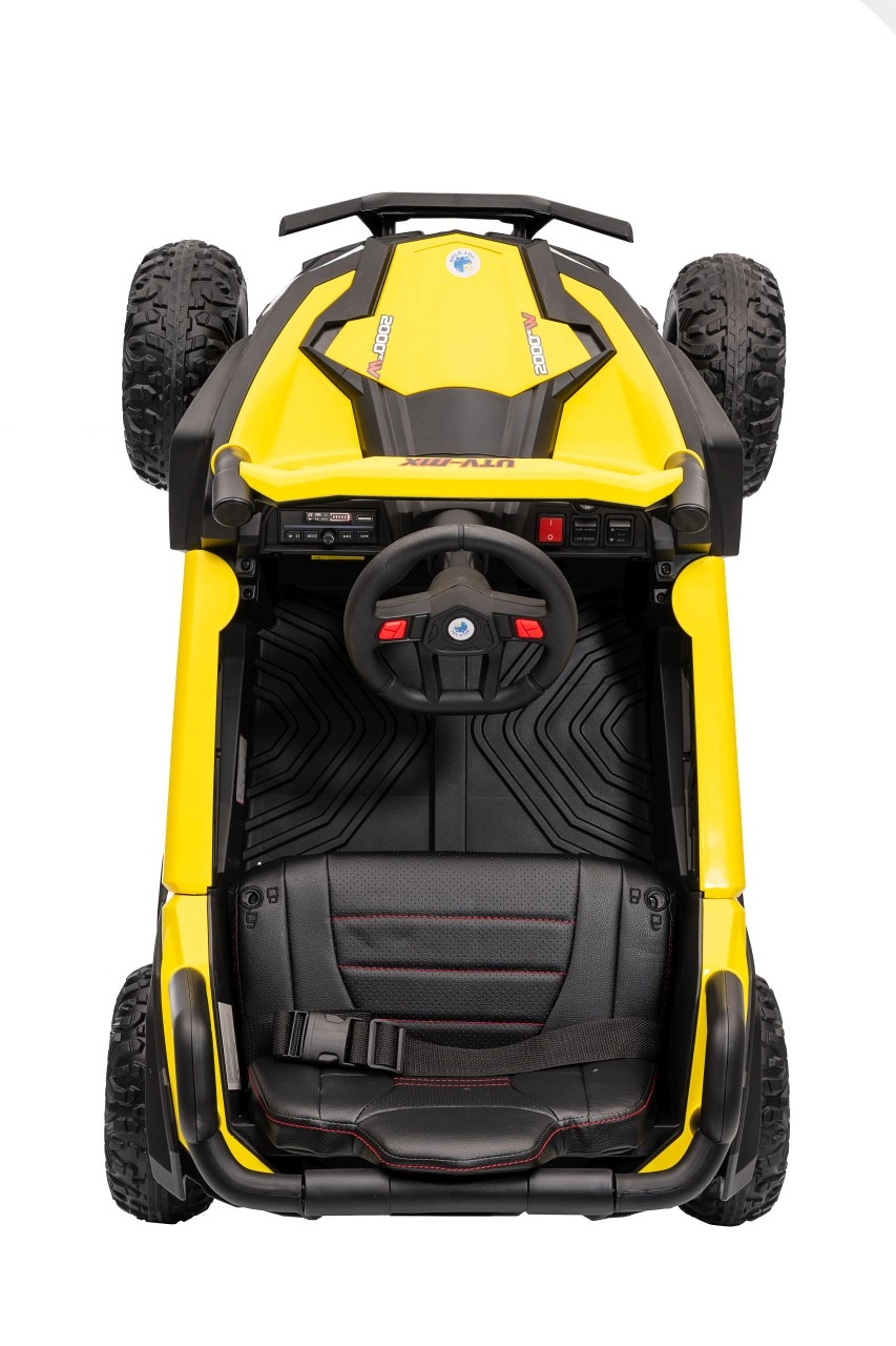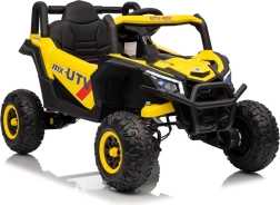 Denne Gule buggy Madman UTV-MX er ideel til børn takket være en motor på 4x35W og et 12V10Ah-batteri, som giver lang køretid. Betjeningen er nem med fjernbetjening på 2,4 GHz og tre hastighedstrin.