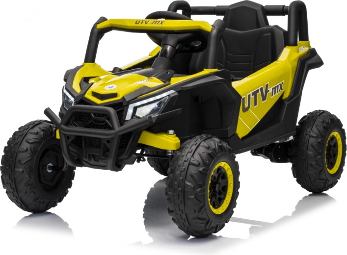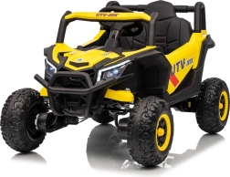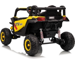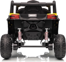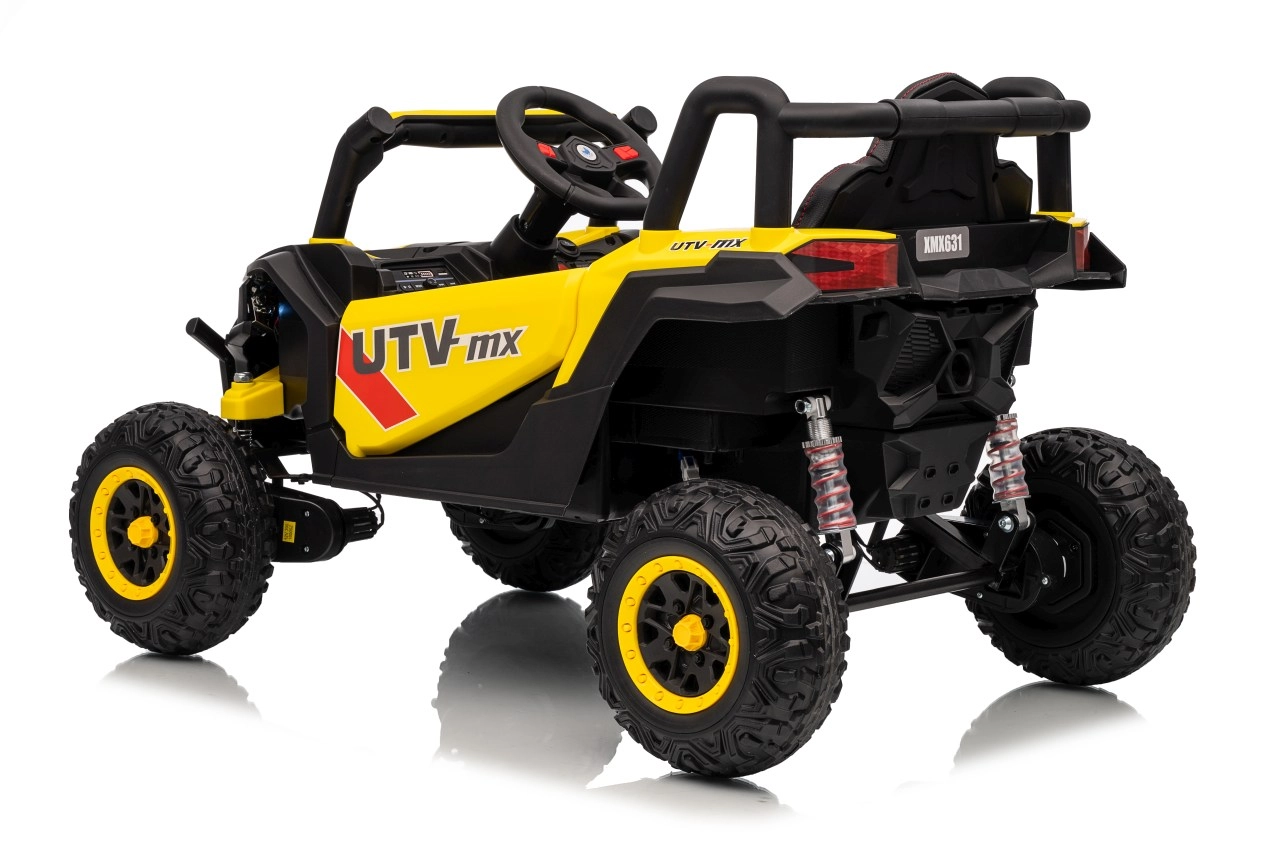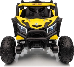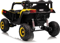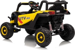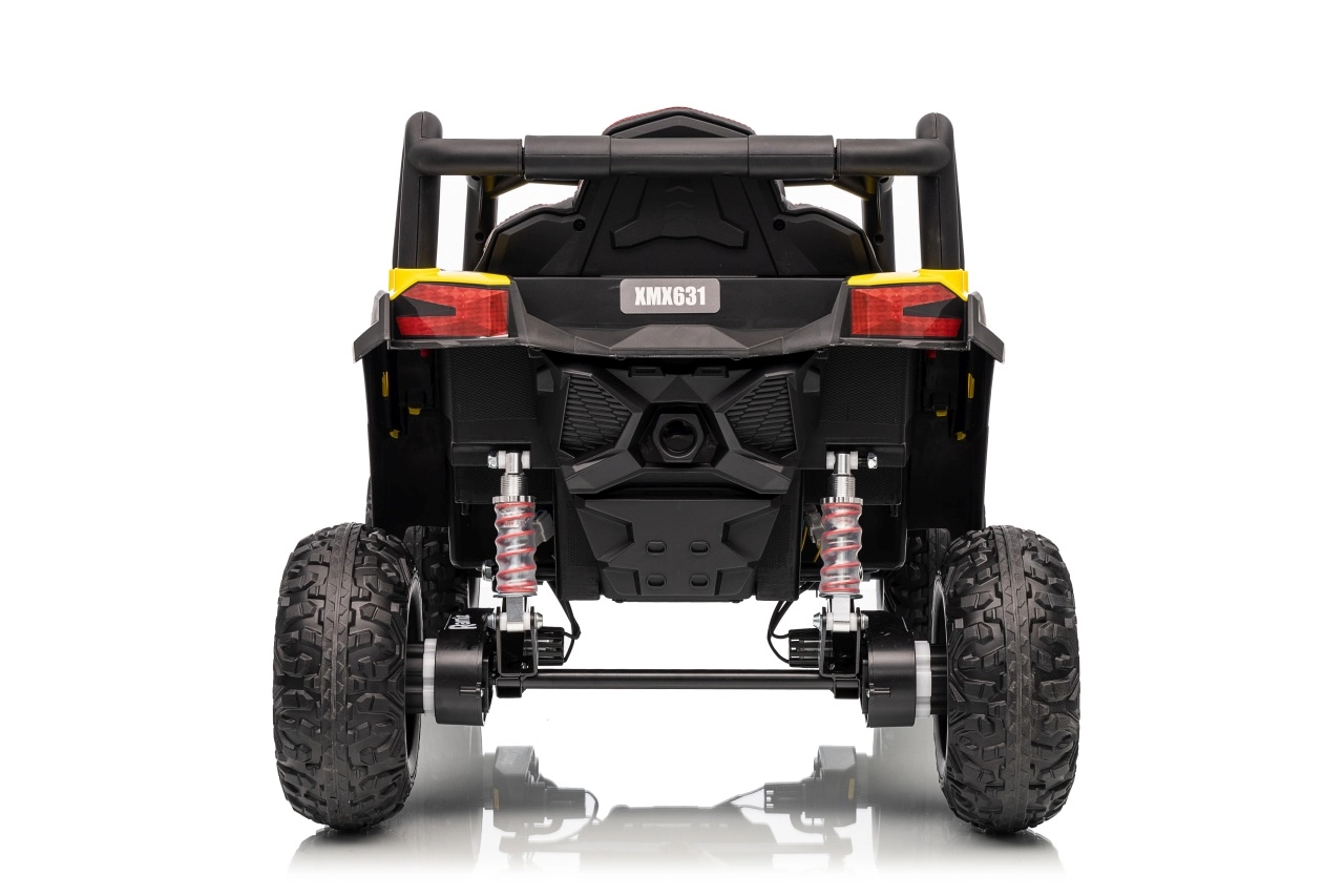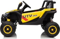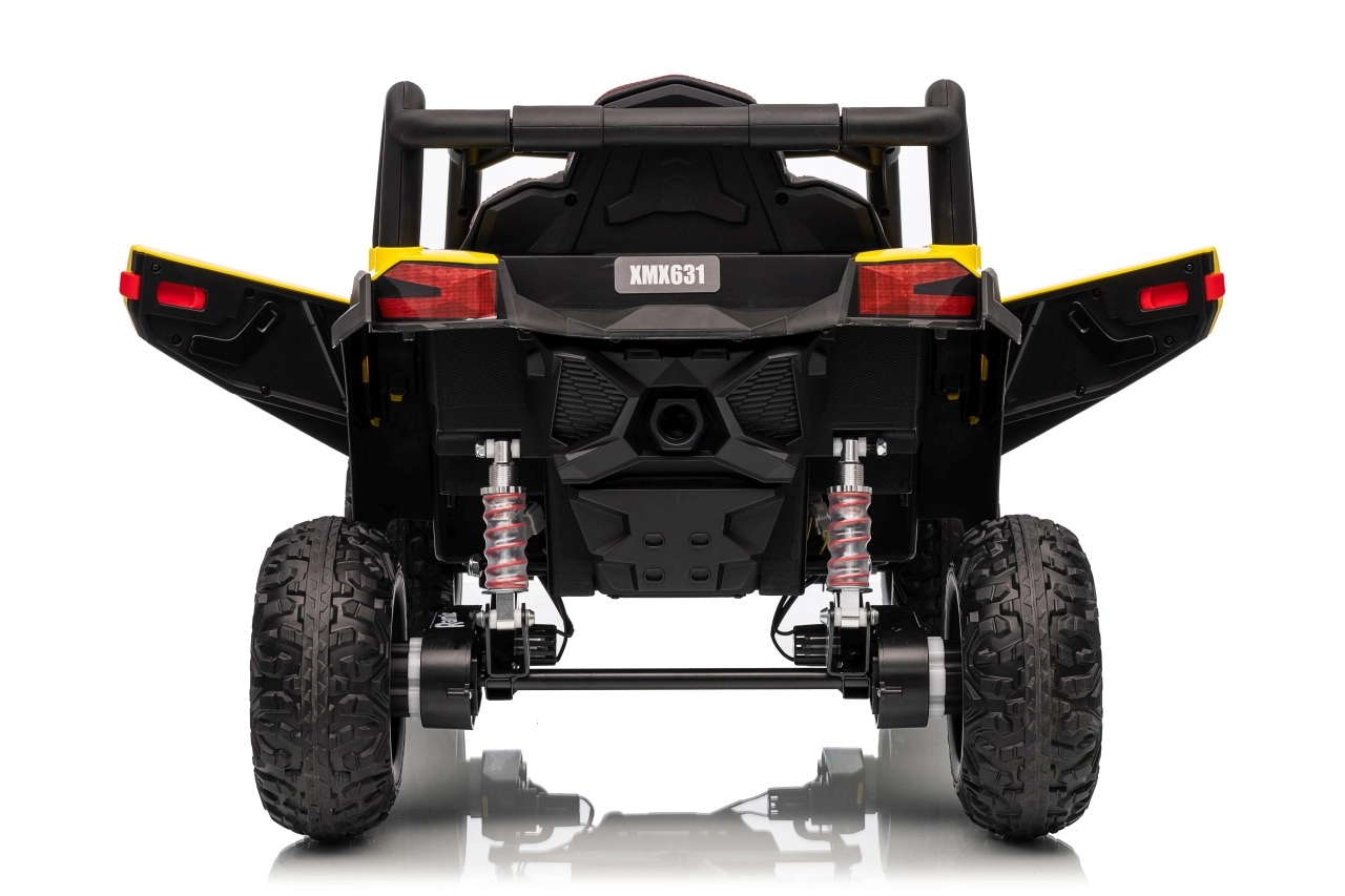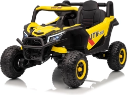 Denne Gule buggy Madman UTV-MX er ideel til børn takket være en motor på 4x35W og et 12V10Ah-batteri, som giver lang køretid. Betjeningen er nem med fjernbetjening på 2,4 GHz og tre hastighedstrin.