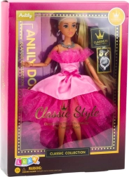 Anlily-dukken i en luksuriøs lyserød kjole giver børn mulighed for at dykke ned i fantasiens verden og lege prinsesse. Kjolen er gennemført med lag af tyl og strålende detaljer, som gør den til et helt særligt stykke legetøj. Den lange blonde fletning og de markante ansigtstræk fremhæver hendes charme. Takket være bevægelige lemmer kan dukken stilles i forskellige positurer, klædes om og bruges i mange scener – til bal, selskab eller hverdag.