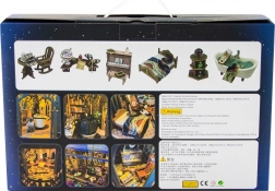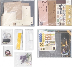 Byggesættet indeholder alle dele og en detaljeret vejledning, inklusive tilbehør nødvendigt til samling, såsom lim, lineal og pincet. LED-belysningen forvandler hver detalje til en ægte juvel, og det hele er beregnet til børn fra 14 år.