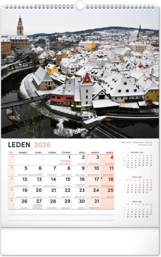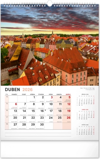 Opdag skønheden i Tjekkiet med vores vægkalender for år 2026. Fotografierne fanger de smukkeste steder, såsom Prag, Kutná Hora eller Olomouc, i et format med højdefokuseret kalender.