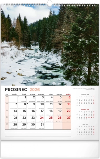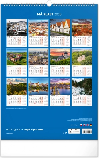 Bring et stykke tjekkisk charme til dit hjem med vægkalenderen Mit land 2026. Denne kalender tilbyder betagende fotografier: