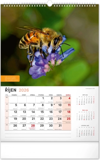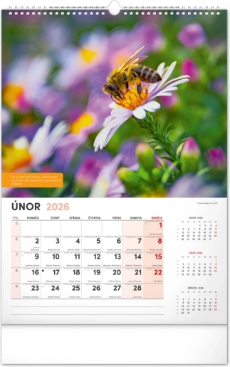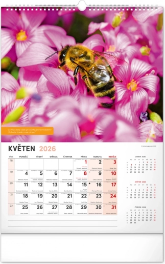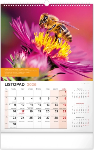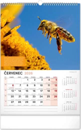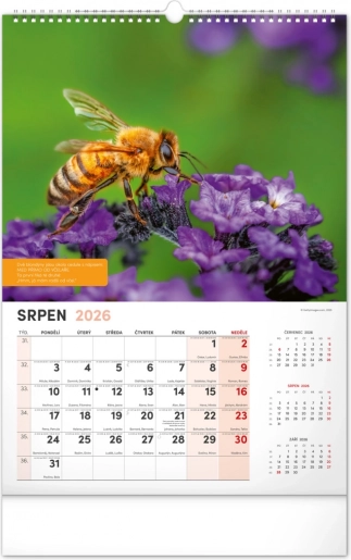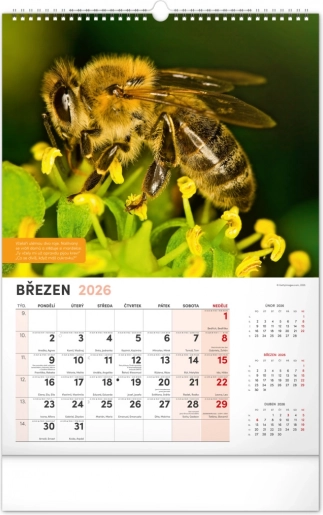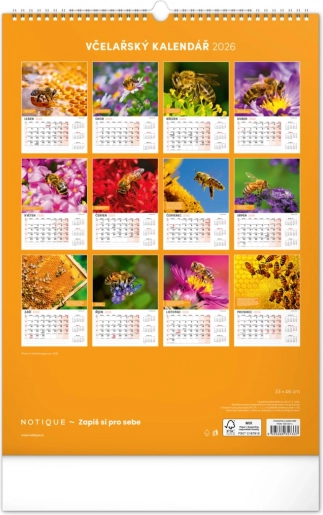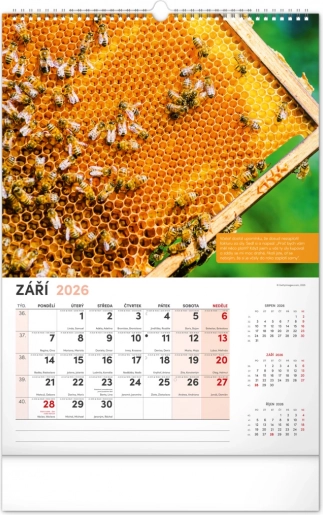 Vægkalender for biavlere med vejrvarsler, visdom og opgaver for hver måned. Indeholder en tjekkisk kalender.