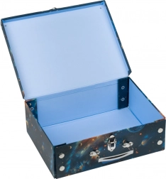 Kufferten har forstærkede hjørner, som muliggør sikker brug uden risiko for skader. Den er ideel til opbevaring af skoleartikler, legetøj eller andre småting, der kræver et sikkert sted. Klassisk lås med spænde og metalskaft sikrer nem og bekvem bæring.