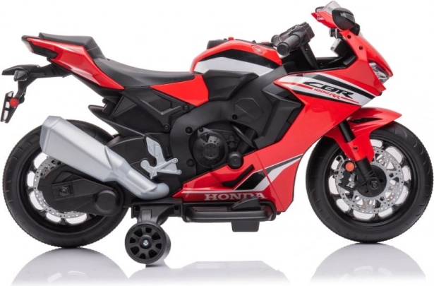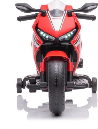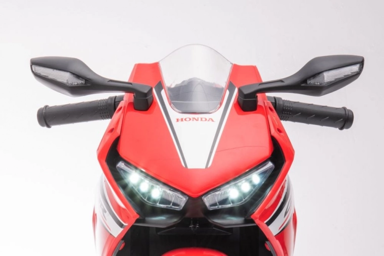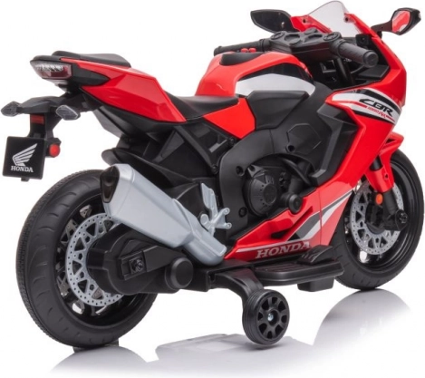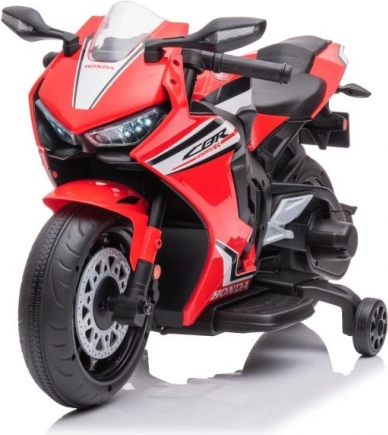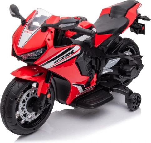 Den elektriske børnemotorcykel Honda CBR 1000RR i rød giver en realistisk oplevelse af at køre en sportsmotorcykel. Den er ideel til små motorcykelentusiaster, der drømmer om eventyr. Med fokus på sikkerhed og stabilitet takket være støttehjulene er den også velegnet til begyndere.