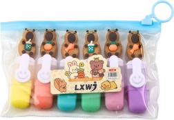 Indeholder seks overstregningstuscher i forskellige pastelfarver, opbevaret i et gennemsigtigt etui med lynlås. De kompakte mål på etuiet (16 x 10 x 2 cm) gør det nemt at bære i rygsæk, taske eller penalhus.