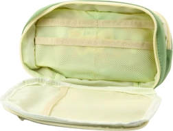 Inde i penalhuset findes mesh-lommer, ideelle til mindre genstande som viskelædere, spidsere eller clips. Penalhuset er lavet af et holdbart materiale med et moderne grønt design og lyse detaljer, som er let at vedligeholde. Det egner sig ikke kun til skole, men også til kontor eller fritidsaktiviteter.