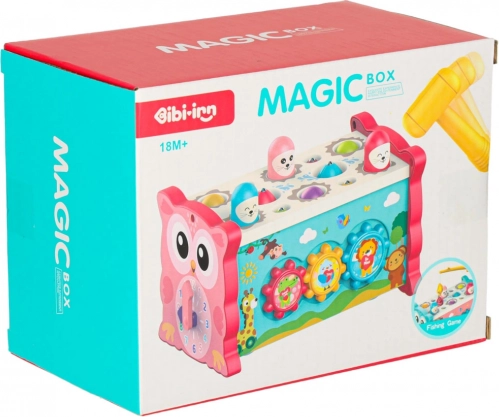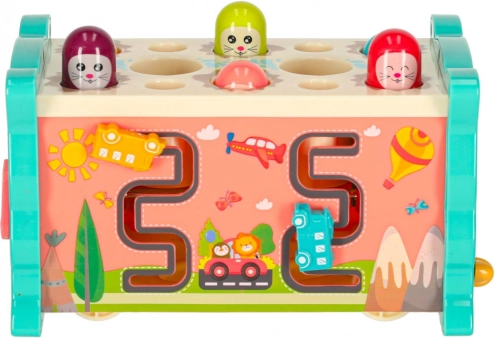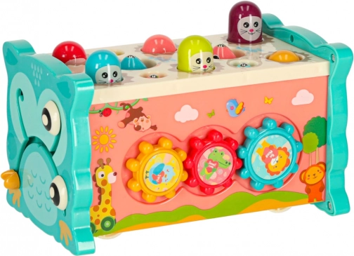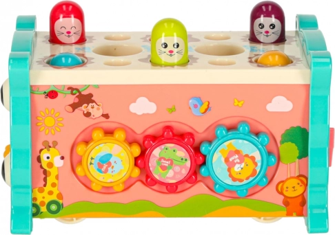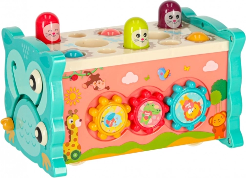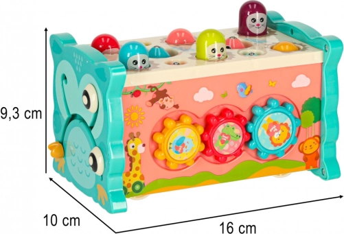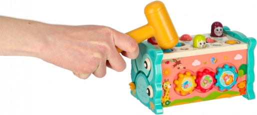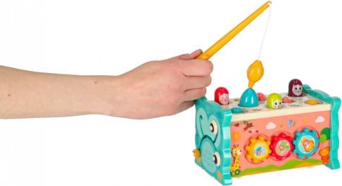 Denne interaktive legetøjssæt garanterer timevis af underholdning! Et af hovedelementerne er muligheden for at banke små muldvarpe ned med en hammer, som springer op, hvilket giver børn glæde og forbedrer deres reflekser. Legetøjet giver også mulighed for at fange farverige fisk og orme med den medfølgende fiskestang, hvilket hjælper med at udvikle præcision og tålmodighed. Børn kan også lære grundlæggende om uret, dreje farvede tandhjul og flytte små biler i en labyrint. Takket være de mange aktiviteter garanterer sættet mange timers sjov, samtidig med at det stimulerer børns sanser med intense farver og varierende former.