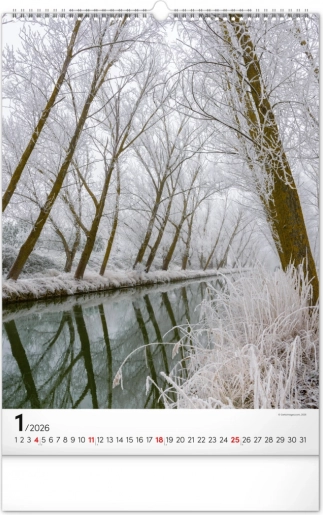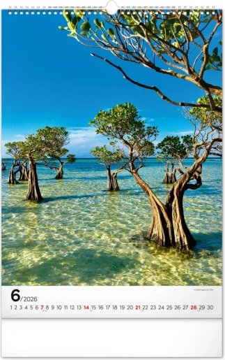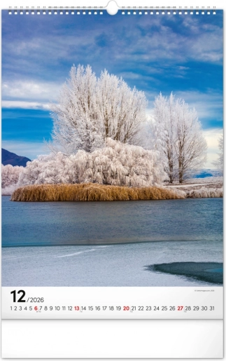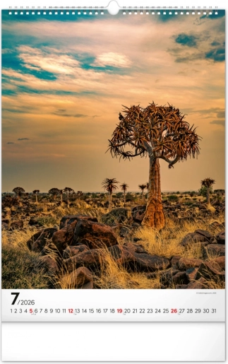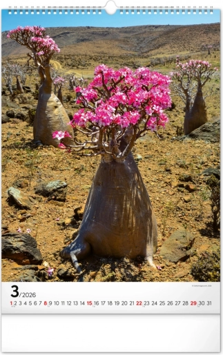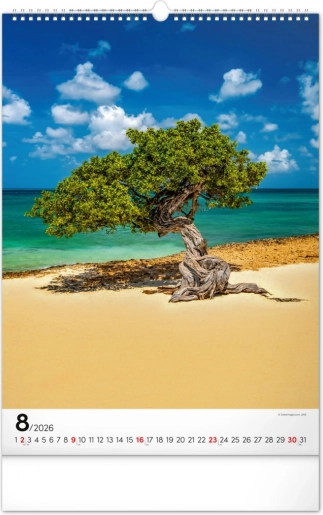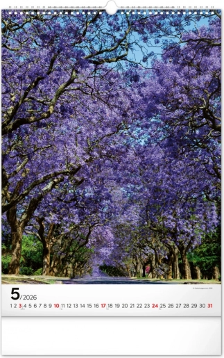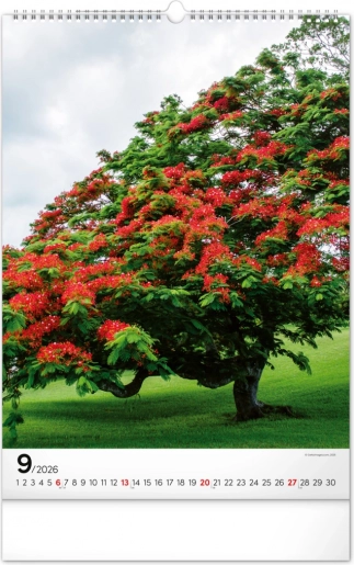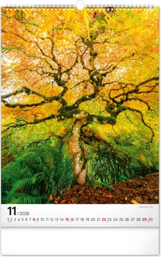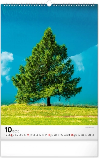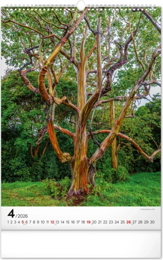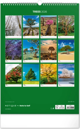 Vægkalender med smukke fotografier af majestætiske træer fra hele verden. Ideel til naturelskere og æstetiske oplevelser.