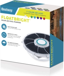 Solcelledrevet LED-fontæne Bestway er et moderne, flydende tilbehør til poolen, der kombinerer vandeffekt med farvet bagbelysning. Den tænder automatisk ved skumring og betjenes nemt med én knap.