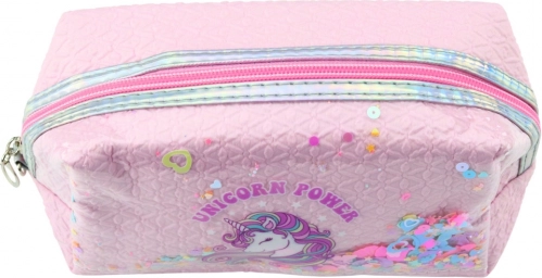 Eventyrligt penalhus med enhjørningemotiv er perfekt til børn, der elsker magiske og farverige temaer. Transparent vindue med bevægelige konfettier tiltrækker opmærksomhed og skaber en unik visuel effekt.
