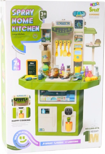 Stort børnekøkken Spray Home Kitchen: 71 dele, lys, lyde, damp, vask.