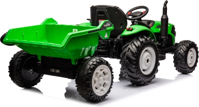 Batteridrevet traktor 24V i lysegrøn til børn med trailer. Perfekt sjov i naturen!
