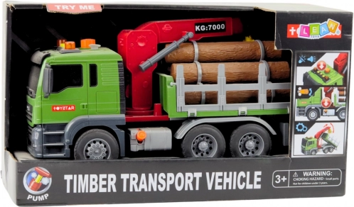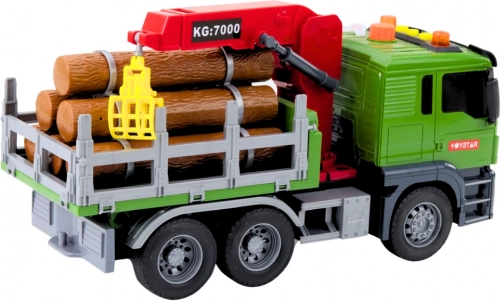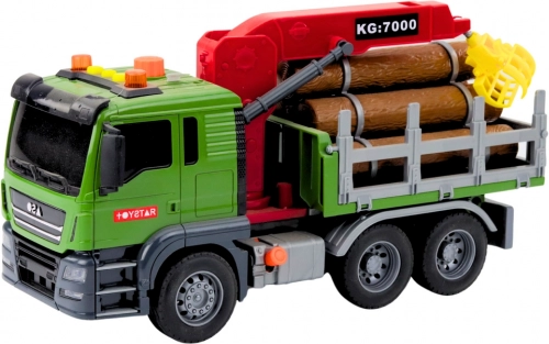 Lastbilen i målestok 1:14 er udstyret med bevægelige dele og interaktive funktioner som lys- og lydeffekter – bakke-lyd, advarselssignal, horn og blinkende advarselslys. Den kan betjenes manuelt, og kranarmen har knapper til at løfte og sænke træstammer, hvilket stimulerer fantasien og udvikler finmotorikken.