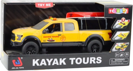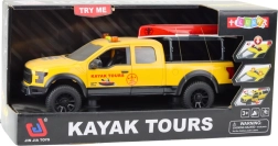 Den terrængående bil med kajak på taget er tilpasset børn, der søger spænding. Modellen tilbyder en robust konstruktion, stilfuld gul farve og realistiske detaljer. Funktionelle døre øger legen og hjælper med at udvikle finmotorikken. Den aftagelige kajak på taget gør det muligt for børn at leve sig ind i rollen som guide på kajakeventyr.