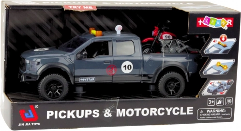 Pick-up med motorcykel er designet til de yngste bilentusiaster og byder på funktioner, der beriger legen og stimulerer fantasien. De åbningsbare døre og den bageste klap gør det nemt at laste motorcyklen, hvilket gør det muligt at skabe forskellige legescenarier – fra redningsmissioner til offroad-løb.