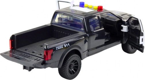 Modellen er udstyret med lys- og lydeffekter, som aktiveres via knapper på taget. Disse funktioner øger realismen og involverer barnet i aktiv leg, opmuntrer til rollespil og skabelse af egne eventyr. Pick-up’en kører let over forskellige underlag takket være de store terrændæk.