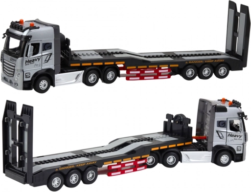 Den fjernstyrede lastbil er udstyret med en bevægelig rampe, åbningsbare døre til førerkabinen og imponerende lys- og lydeffekter. Disse funktioner sikrer en autentisk legeoplevelse, hvor børn kan fordybe sig fuldt ud i scenarier med byggeri og transport af tunge maskiner. Sættet inkluderer en gul gravemaskine, som passer perfekt på lastbilens lad og giver børn mulighed for at skabe deres egne scenarier for lastning, transport og aflæsning af maskiner.
