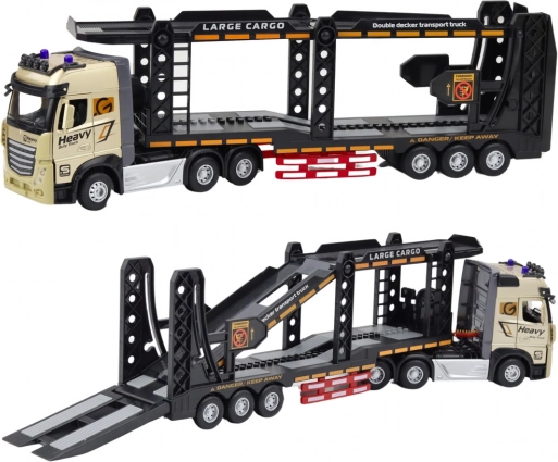 Lastbilen er ideel til intensiv leg både indendørs og udendørs. Takket være sine dimensioner og robuste konstruktion kan modellen perfekt bruges til at transportere andre køretøjer eller iscenesætte transportsituationer.
