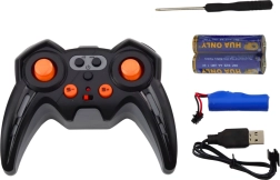 Styringen varetages af en komfortabel 2,4 GHz fjernbetjening, som giver jævn kontrol over bevægelse frem, tilbage, til højre og venstre, og som desuden muliggør aktivering af demo-tilstand, lys og lyde. Den intuitive knapopsætning gør det muligt for barnet at betjene køretøjet selvstændigt og lærer de grundlæggende principper for rumlig orientering.