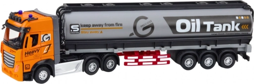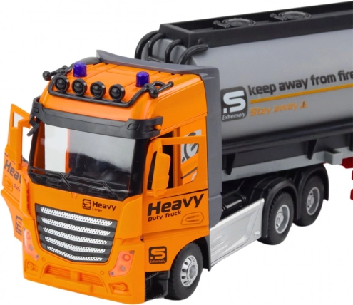 Tankvognen er udstyret med åbnebare kabinedøre, lys- og lydeffekter aktiveret via fjernbetjeningen samt advarselsklistermærker, der giver følelsen af et ægte brændstoftransportkøretøj. Dens orange-sorte farver, dynamiske linjer og præcist udførte detaljer tiltrækker opmærksomhed og giver køretøjet et professionelt præg.