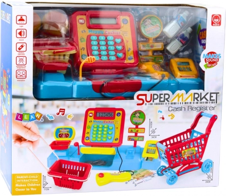 Børnelegesættet med kasseapparat er en ideel læringslegetøj, der fremmer kreativitet og evnen til at samarbejde med andre. Børn kan glæde sig til at lege med det interaktive kasseapparat, som byder på lys- og lydeffekter, og bruge lommeregner og terminal til realistiske indkøbssituationer. Sættet indeholder også kurv og indkøbsvogn til at efterligne hele indkøbsprocessen.