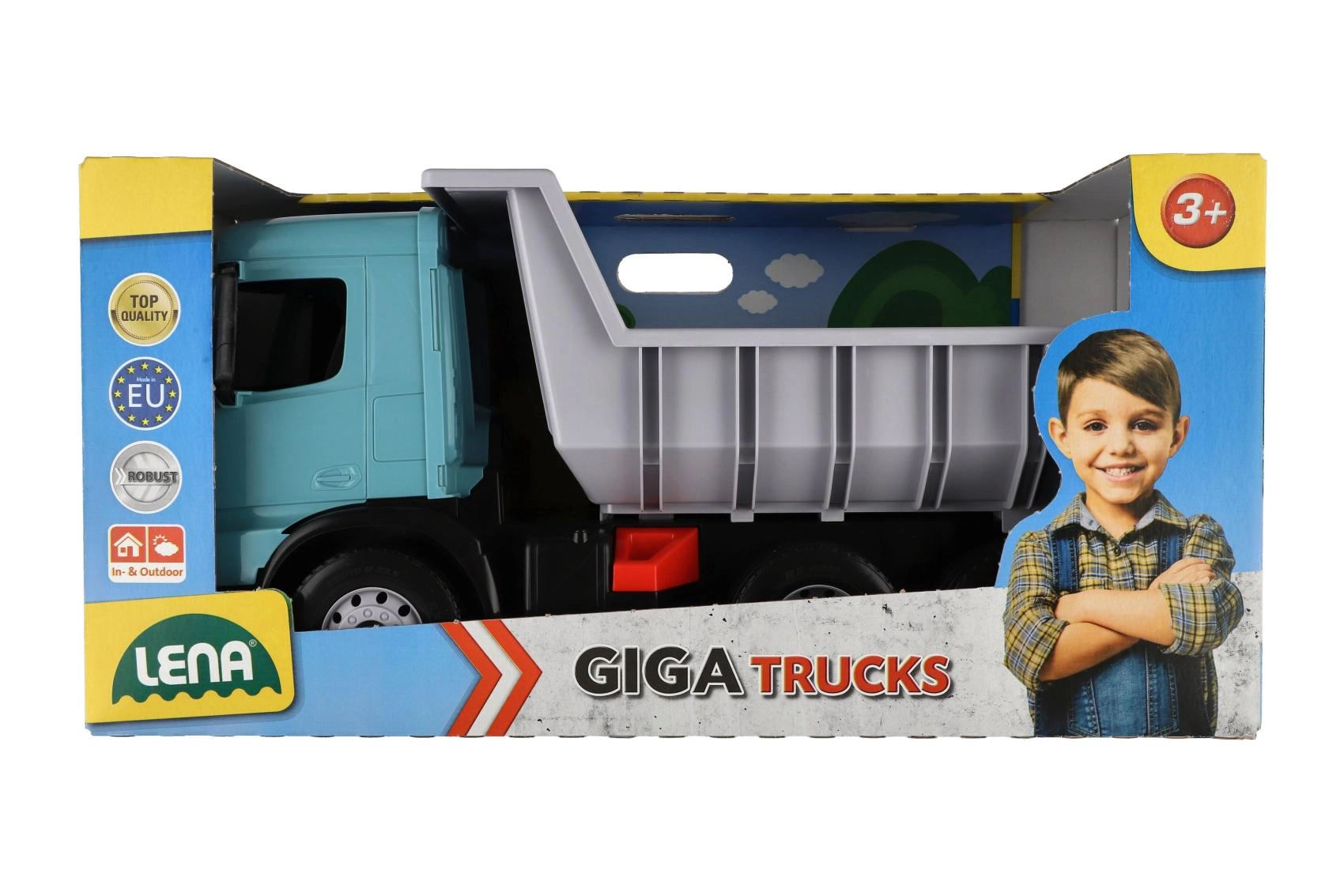 Denne robuste tipvogn fra Giga Trucks-serien er skabt til små bygmestre. Takket være den store tipbare ladkasse med lås kan den uden problemer transportere selv større læs og losse dem sikkert. Realistiske detaljer fra AROCS-kabinen understøtter kreativ og tematisk leg på byggepladsen, i haven og på børneværelset.