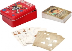 Unikke One Piece-spillekort i en elegant metaldåse med licenseret motiv. Ideelle til fans af den populære serie og samlere.
