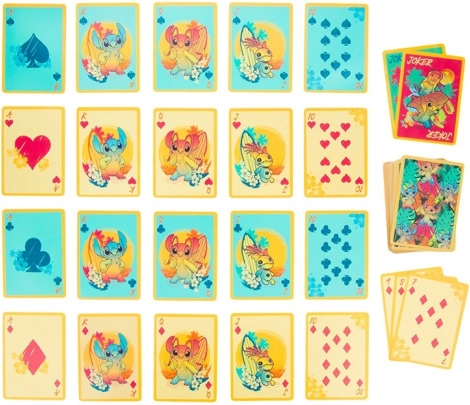 Stitch spillekort er ideelle til spil på stranden, ved poolen eller i regnvejr. Takket være den specielle vandtætte overflade kan du spille uden bekymring for vandskader. Kortene er pakket i en praktisk plastboks, hvilket gør dem nemme at transportere og beskytte.