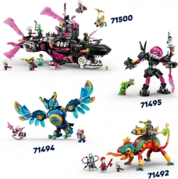 Sættet er fyldt med detaljer: klods-skydere, åbningsbart cockpit og udskiftelige moduler, som kan kombineres med andre LEGO DREAMZzz sæt. Der medfølger fem minifigurer – Mateo, Cooper, hr. Oz, One og D‑Shock – plus figuren Albert og to cyber-edderkoppe-hjerneædere til virkelig dynamiske scener.
