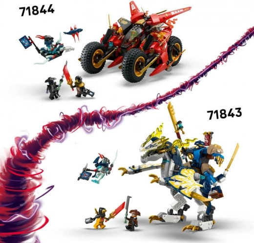 Der medfølger også Soras flyvende motorcykel og skurkenes bevægelige spektral-drage. Dragen kan kombineres med dele fra sættet Kaos-dragen Kiełogrzmot (71832) for endnu mere action. LEGO Builder appen tilbyder en intuitiv 3D-vejledning, lagring af fremskridt og zoom af modeller, så byggeri af de 1112 dele bliver en leg.