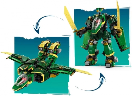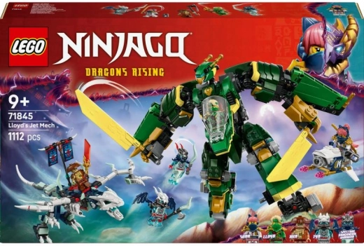 Træd ind i NINJAGO-universet med Lloyds kraftfulde mech, der på et øjeblik forvandles til et elegant jetfly. Takket være mechenes artikulationsled kan du nemt posere den til action, mens den ombyggelige konstruktion giver to legeformer i ét sæt. Inkluderer 5 minifigurer – SORA og LLOYD med ninja-udstyr mod skurkene KUR og TYR samt en kriger fra Spektrale Drager med et skjult banner, der kun afsløres med en gennemsigtig åbenbaringsklinge.