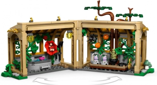 Byg et detaljeret drivhus/klasselokale, der kan åbnes for bedre adgang og leg. De to aftagelige borde er udstyret med magiske planter og værktøj, mens et træ kigger frem gennem det “itu-slåede” vindue. De specialdesignede mandraker kan tages op af urtepotterne, og minifigurerne kan holde dem i bladene – perfekt til ikoniske scener fra HOGWARTS.