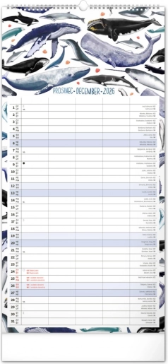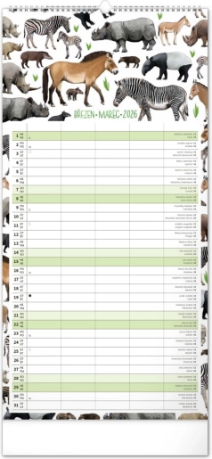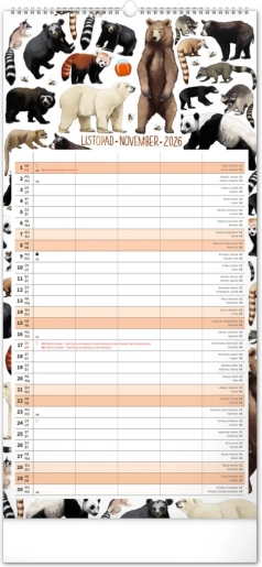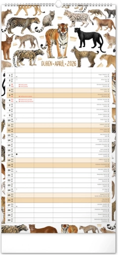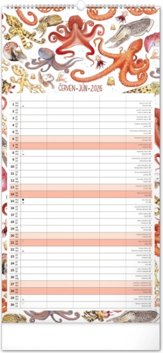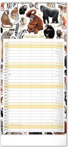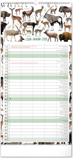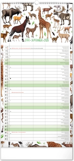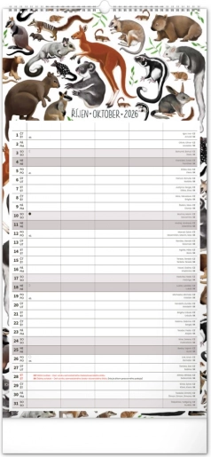Familjeplanlægger kalender Animalium for år 2026 er det perfekte valg for organiserede husholdninger. Tilbyder masser af plads til at planlægge aktiviteter for op til fire familiemedlemmer sammen med vidunderlige illustrationer af dyr.