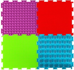 Oplev sanselig opfattelse gennem sensorisk puslespilsmåtte, der kombinerer sjov med læring. Dette sæt er ideelt til børn fra 2 år og indeholder otte farverige dele i farver som blå, rød, grøn og andre. Den er lavet af holdbar polyurethan og giver ikke kun sjov, men også sund træning for fødder og kropskoordination.