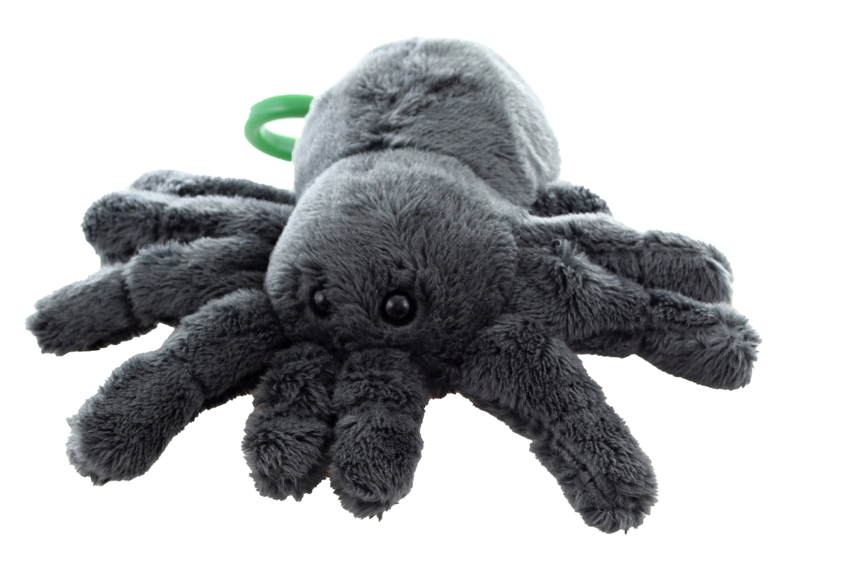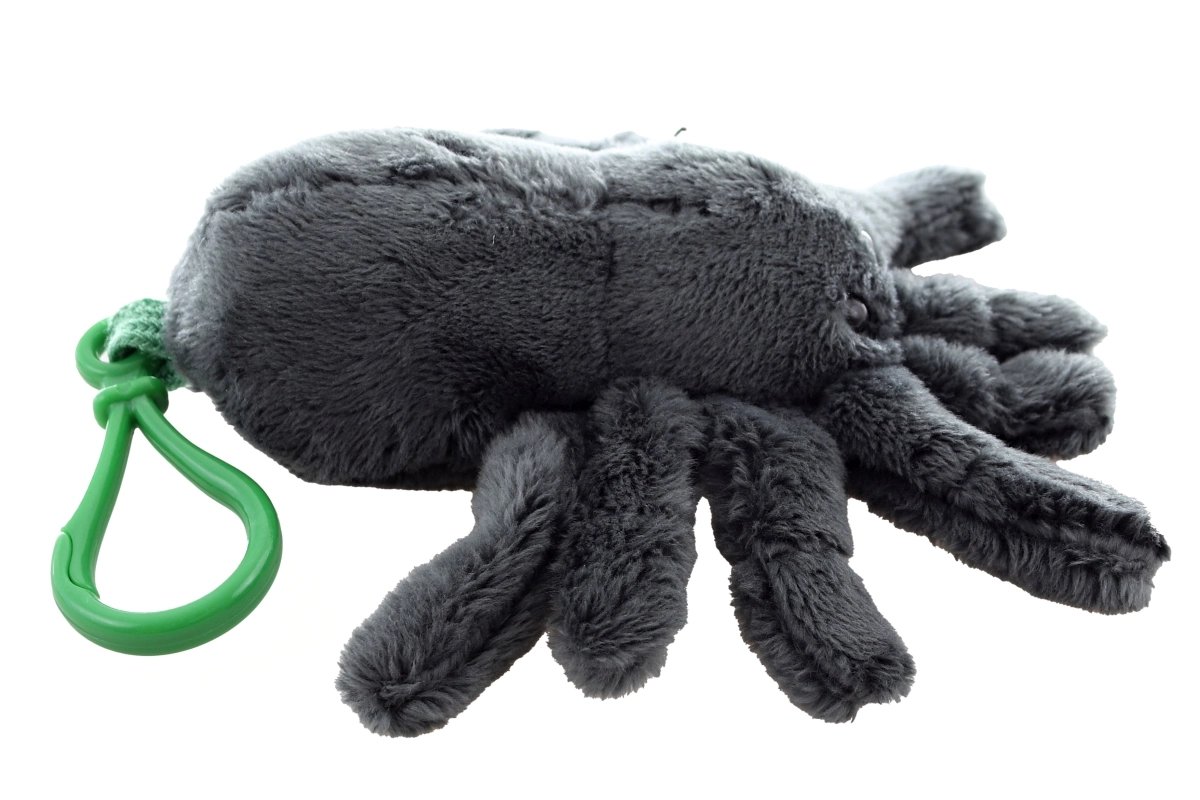 Sød plysbamse-tarantel til både små og store edderkoppelskers. Ideel som vedhæng til nøgler eller rygsæk, lavet af blødt materiale med klips for nem fastgørelse.