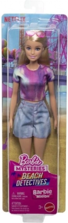 Barbie “Malibu” bringer frisk sommerstil og masser af lege muligheder. Takket være den batikfarvede crop top, denimshorts og stilfulde briller er hun klar til enhver udfordring – fra stranddetektivarbejde til byeventyr. Fuldt bevægelige lemmer muliggør naturlige poser og sjove scener.