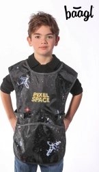 Stilfuldt børneforklæde Pixel Space er ideelt til billedkunst, håndværk og andre fritidsaktiviteter. Det har praktiske lommer og er lavet af aftørringsvenligt materiale.